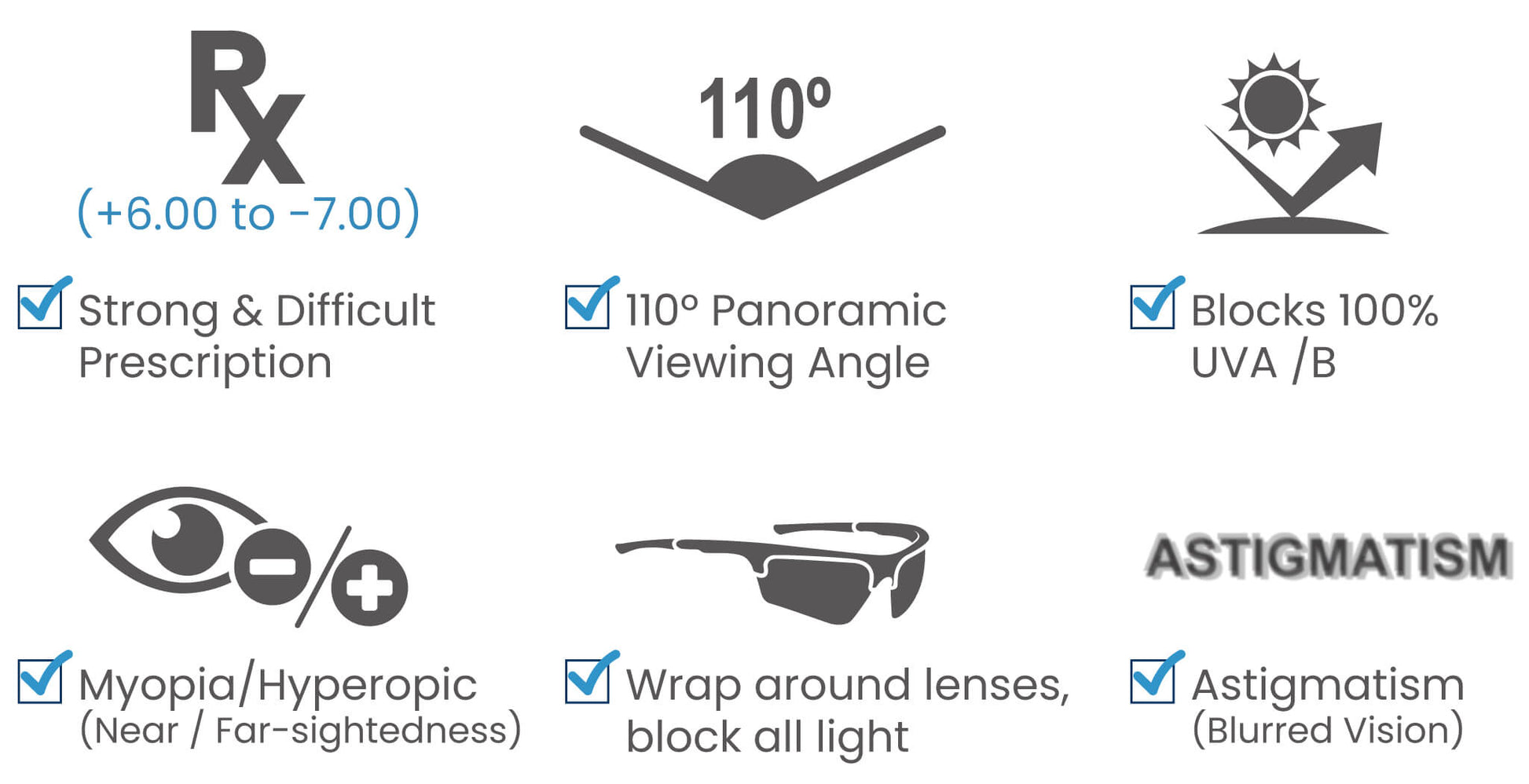 We specialize in strong and difficult prescriptions. For the PROGEAR® Dash2 Sunglasses, we can offer as high as -7/+6.